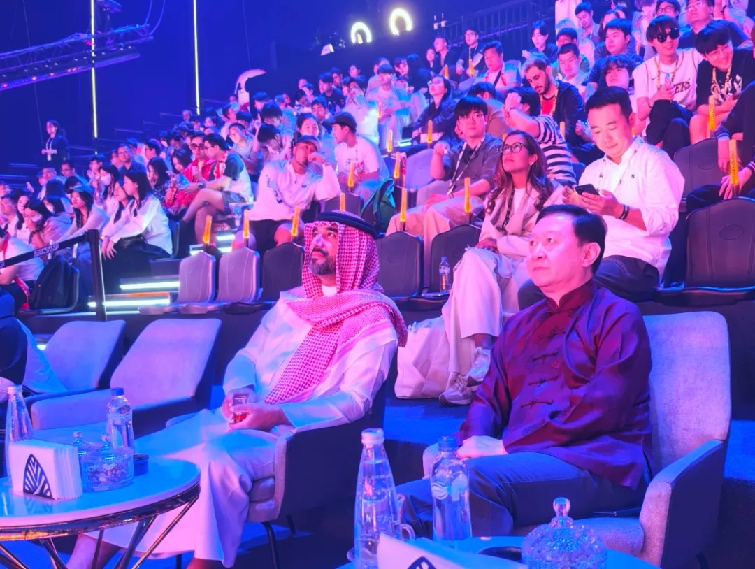中国馆内,高高悬挂的大红灯笼与油纸伞交织出热烈喜庆的色彩。常大使和费萨尔亲王饶有兴致地观看中沙电竞文化展陈,并不时与中国选手们交谈。他们赞赏选手们在比赛中展现的拼搏精神,表示中沙在包括电竞在内的文体领域紧密合作,正为两国青年搭建起心灵相通的桥梁,意义深远。