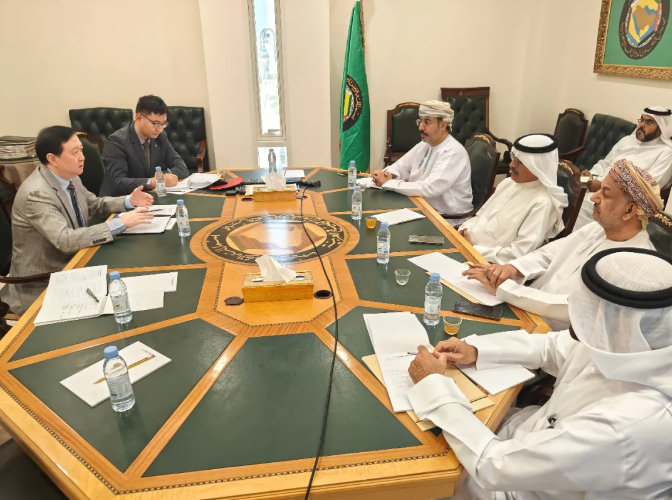 2025年8月26日,驻沙特大使常华会见海湾阿拉伯国家合作委员会谈判和政治事务助理秘书长欧维什格。