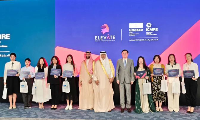 加姆迪向常大使介绍了SDAIA有关情况及ICAIRE中心工作进展,之后双方共同出席中心组织的“Elevate”倡议主题活动,该倡议旨在全球范围内赋能2.5万名女性掌握人工智能技能。常大使和加姆迪为参加该活动的中资企业女性员工代表颁发证书并合影留念。