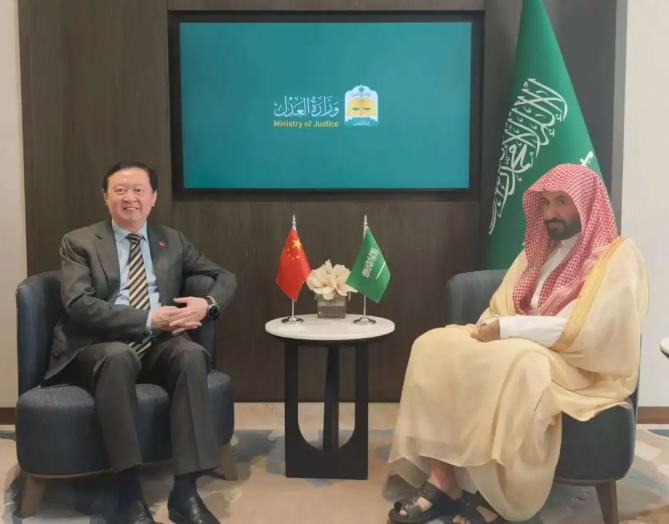 2025年10月5日,驻沙特大使常华拜会沙特司法大臣萨默阿尼。