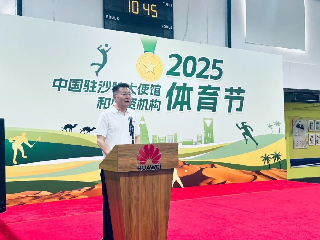驻沙特大使常华在开幕式上致辞。常大使表示,习近平总书记指出:“要广泛开展全民健身活动,推动体育成为人民健康幸福生活的重要支撑。”体育运动帮助我们缓解压力、保持健康,更让我们在竞争中学会合作,在拼搏中体悟坚持,在团队中增进情谊。大家身处异国他乡,肩负着推动中沙关系发展的重要使命,更把“全民健身”理念融入日常生活,把强身健体作为提高工作效率、增进身心健康的重要途径。希望大家把体育节当作一次凝心聚力的契机,把团结拼搏精神带到各自岗位上,以更健康的体魄、更饱满的热情投入工作生活,为推动中沙友好合作、以中国式现代化推进强国建设、民族复兴伟业贡献新的力量。