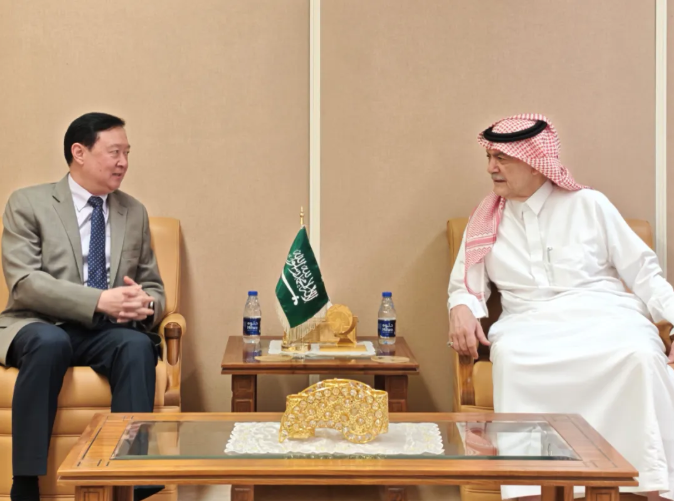2025年6月30日,驻沙特大使常华会见《利雅得报》总编哈尼。