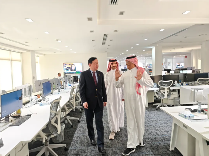 2025年7月9日,驻沙特大使常华参访沙特东方电视台总部并会见台长哈立德。