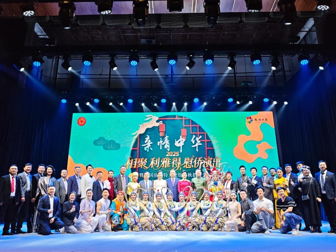 2025年10月3日,驻沙特使馆举行中秋招待会,中国侨联献上“亲情中华—相聚利雅得”慰侨演出,驻沙特大使常华出席。中国侨联代表团,以及在沙华侨华人、教师留学生、中资机构员工代表等600余人欢聚一堂,共庆佳节、共话团圆。