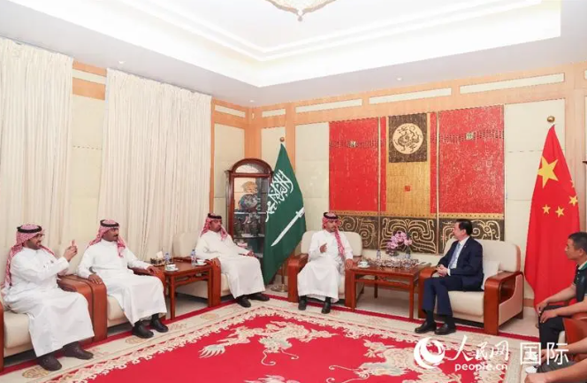 中国驻沙特大使常华同沙特见义勇为青年及中国公民交流慰问。人民网记者 任皓宇摄