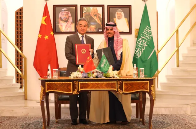 当地时间2025年12月14日,中共中央政治局委员、外交部长王毅在利雅得同沙特外交大臣费萨尔主持召开中沙高级别联合委员会政治分委会第五次会议。