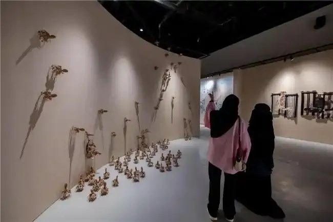 开幕日的一大亮点是沉浸式装置“双东庭院”。该作品艺术化地呈现了沙特德拉伊耶遗址与中国万里长城、哈萨绿洲与云南景迈山古茶林之间的跨文明对话,并融汇了多个联合国教科文组织认可的、彰显人与自然和谐共生的遗产地意象。除此之外,现场还设有中沙联合艺术展,汇聚两国艺术家的匠心之作。展览跨越传统与现代,所展作品从独特的工艺技法、深厚的文化符号与隽永的精神象征中汲取灵感,生动诠释了在跨文化对话中孕育而出的艺术共生与创新。
