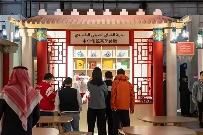 美食体验区以“食”为媒,通过沙特与中国美食的现场烹制、中国茶道演示及地方风味品鉴,展现了两国在餐饮文化中的交流与共鸣。专设的休憩区域则体现了“宴客”与“聚会”在两国文化中的重要社会角色。