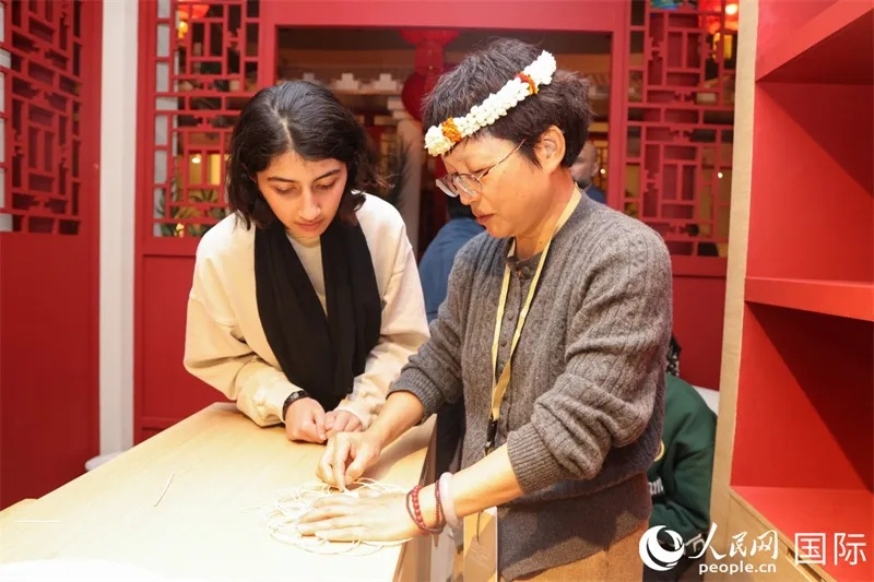 人民网利雅得12月30日电(记者任皓宇)随着双手上下翻飞,几名沙特年轻人在竹编大师的指导下,把缕缕竹丝条编织成小工艺品,旁边还站着不少等待体验的观众。近日,由中国文化和旅游部与沙特文化部联合举办的“文化市集”活动在沙特首都利雅得开幕,有着浓浓中国传统风格的集市里一片热闹喜庆。